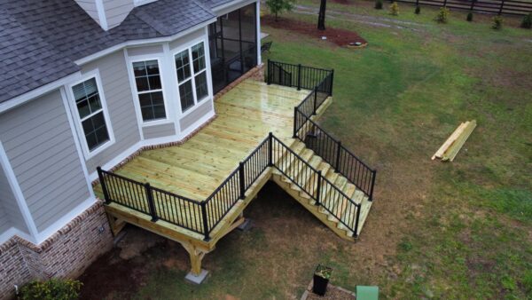 Pressure treated deck with upgraded aluminum railings